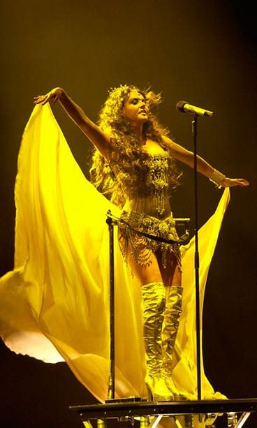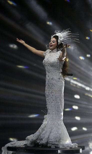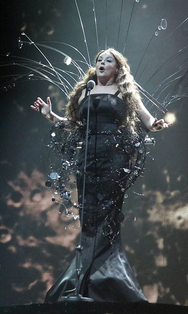 Englantilainen Sarah Brightman, 53, on näyttävä nainen, etenkin lavalla ollessaan. Hän ei pelkää kimallusta, suuria koruja tai erikoisia päähineitä. Kaunisääninen sopraano olisi voinut kävellä lavalle unesta tai fantasiasadusta.