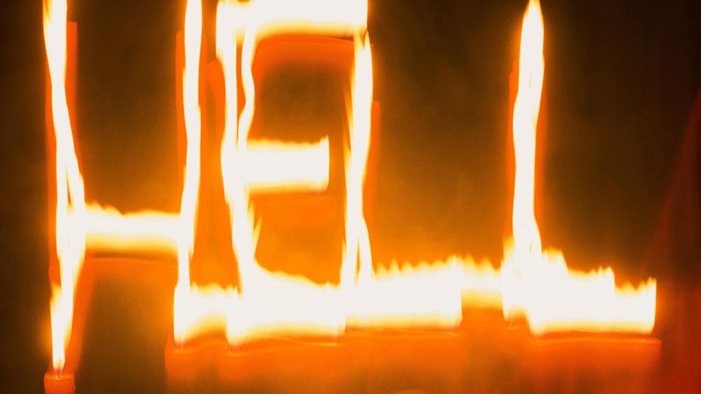– Nyt hänellä on helvetisti korvattavaa, mies jatkaa. (Sanaleikki "hell to pay" on tässä yhteydessä suomen kielelle kääntymätön sanaleikki)