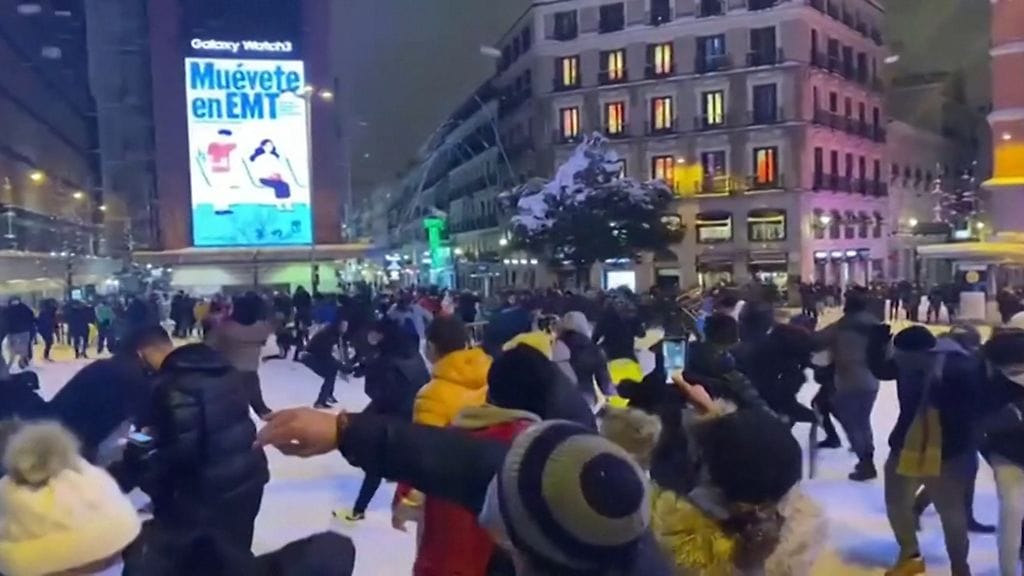Tämän todistaa spontaani lumipallosota, joka puhkesi Madridin kaduilla eilen lauantaina. Ihmiset viskelivät lumipalloja toisiaan päin, minkä käsistään saivat niitä pyöriteltyä.