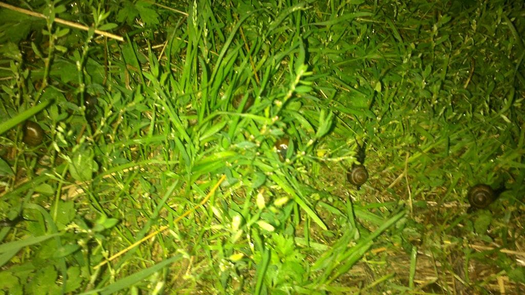 Useimmiten pihoilla näkyy parin-kolmen sentin mittaisia peltoetanoita ja pienempiä lehtokotiloita.
