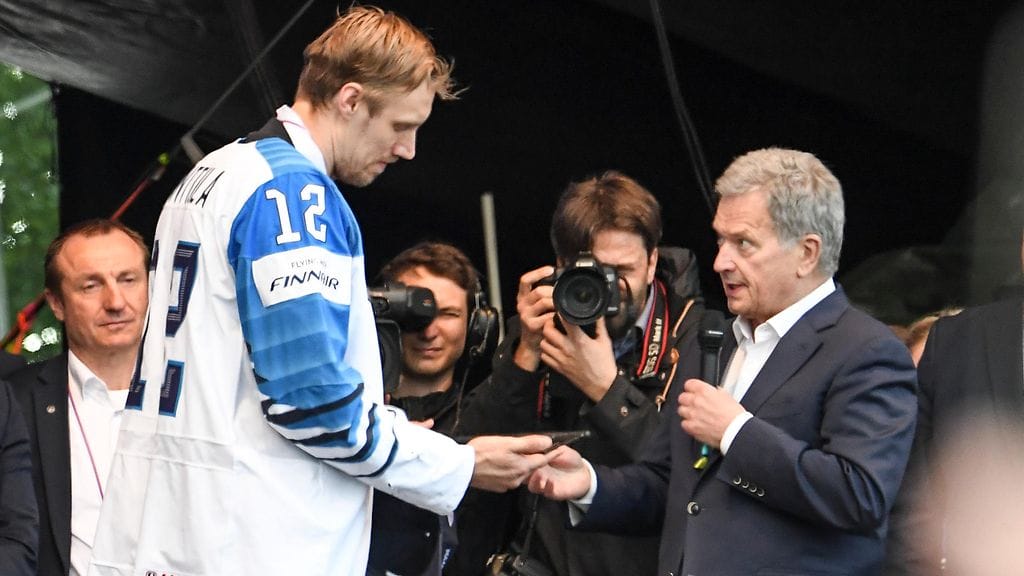 – Kiitokset siitä tasavallan presidentille, että hän on suostunut tähän tehtävään. Hänhän on itsekin oikein hyvä jääkiekon lähettiläs ja pipolätkän pelaaja. Hän seuraa innokkaasti sitä, mitä jääkiekossa tapahtuu, pääsihteeri Hietanen sanoi.