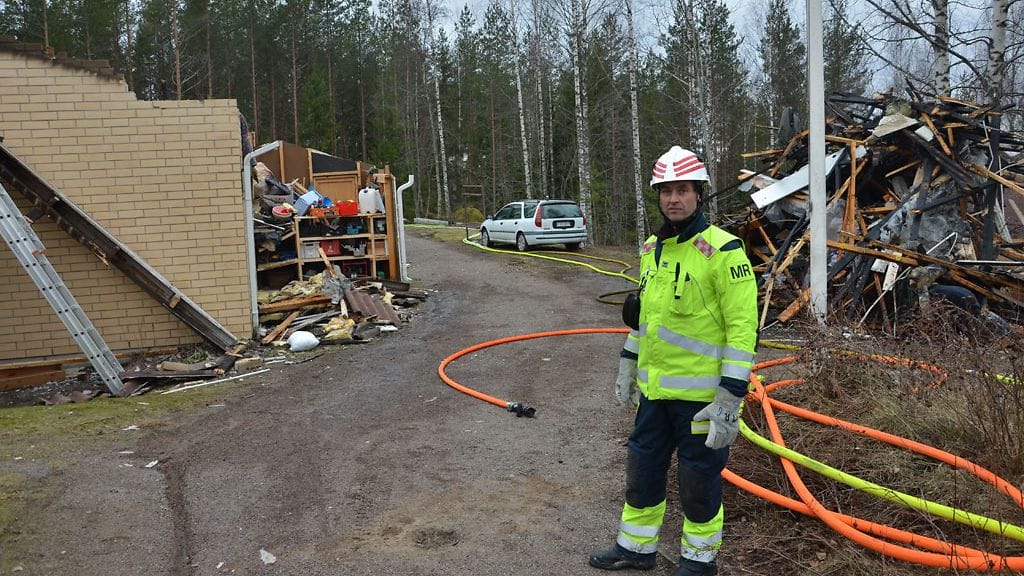– Huoneistopalo havaittiin eilen illalla. Tämä on neljä huoneistoa käsittävä rivitalo, jonka yhdessä asunnossa syttyi tulipalo. Palo saatiin sammutettua eilen, mutta aamulla havaittiin, että kattorakenteiden alta tulee savuja ja liekkejä.