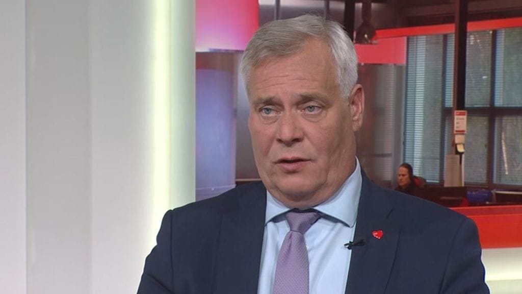 SDP:n puheenjohtaja Antti Rinne puolustaa MTV:n Uutisextrassa kohuttua lausuntoaan "niskalaukauksesta".