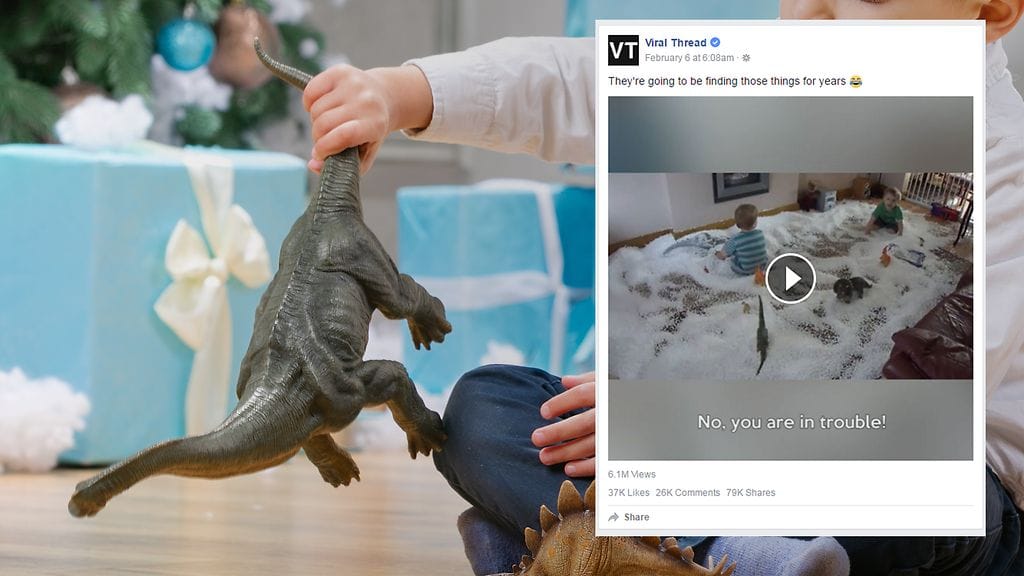 Viral Thread -sivuston jakamalla videolla järkyttynyt äiti videoi pienten poikiensa leikkejä. Poikien dinosaurusleikeissä tärkeää osaa näyttelee säkkituoli, jonka sisältö on levitelty ympäri olohuonetta.