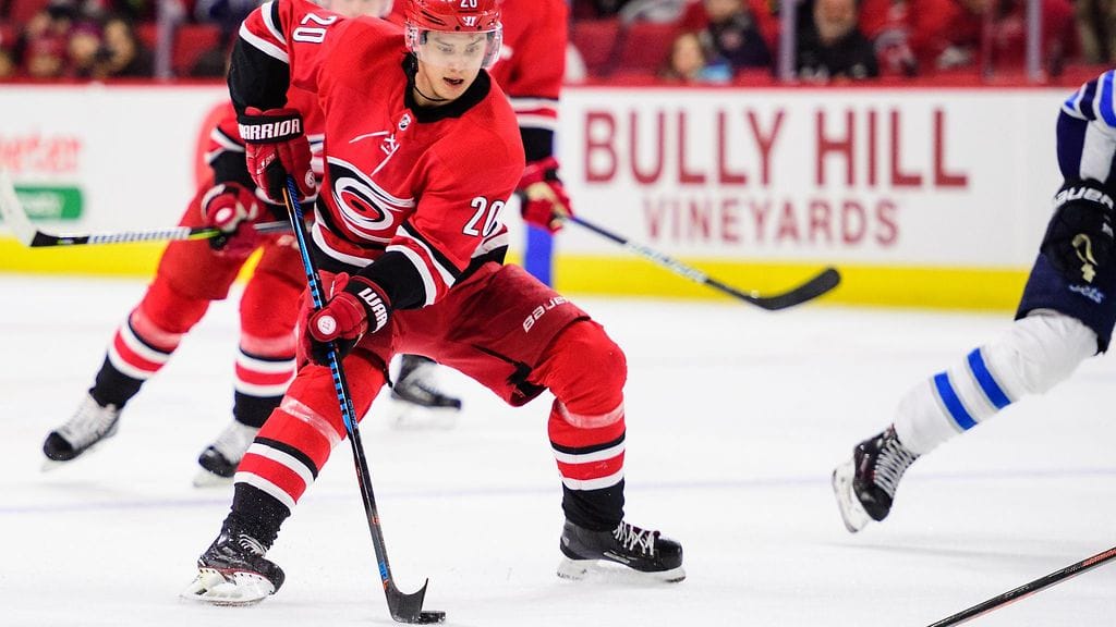NHL-uransa aikana Aho on nakuttanut 144 ottelussa tehot 47+53=100.