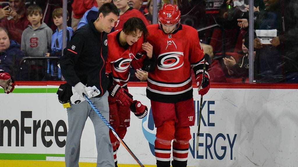Aho jouduttiin taluttamaan pukusuojaan, eikä hän palannut jäälle. Hurricanes ei ole kommentoinut suomalaishyökkääjän tilaa sen jälkeen.