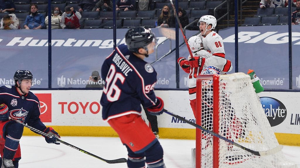 Jääkiekon NHL:ssä Carolina Hurriganes otti Sebastian Ahon maalilla jatkoaikavoiton Columbus Blue Jacketsista. Peli päättyi 4–3.Columbuksen maalilla Joonas Korpisalo ehti jo kertaalleen torjua Martin Necasin maaliyrityksen, mutta räpylästä karannut kiekko päätyi vielä Necasin syötöstä Ahon onnistuneeseen laukaukseen.