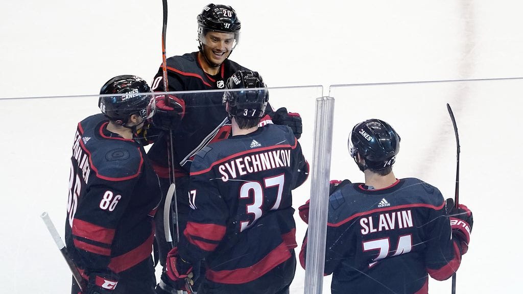 Aho syötti kaikki Svetshnikovin kolme maalia, kun Hurricanes voitti 4-1. Sarja on nyt katkolla Carolinalle 2-0-lukemissa.