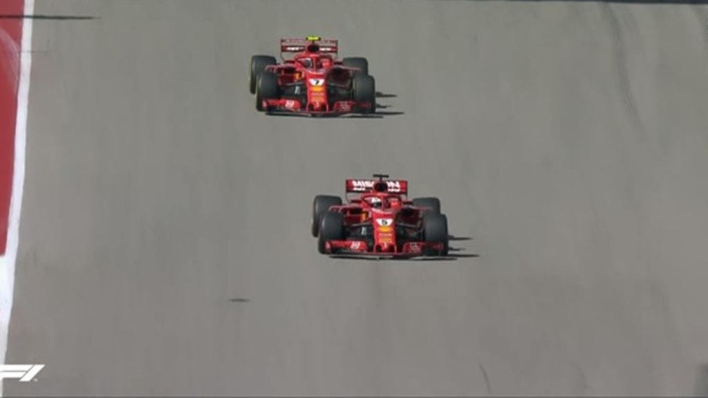 Kimi Räikkönen pääsi varikkokäyntinsä jälkeisen hyvän vauhdin ansiosta ohittamaan tallikaverinsa Sebastian Vettelin Ferrarin pyynnöstä Yhdysvaltain F1-kisassa.