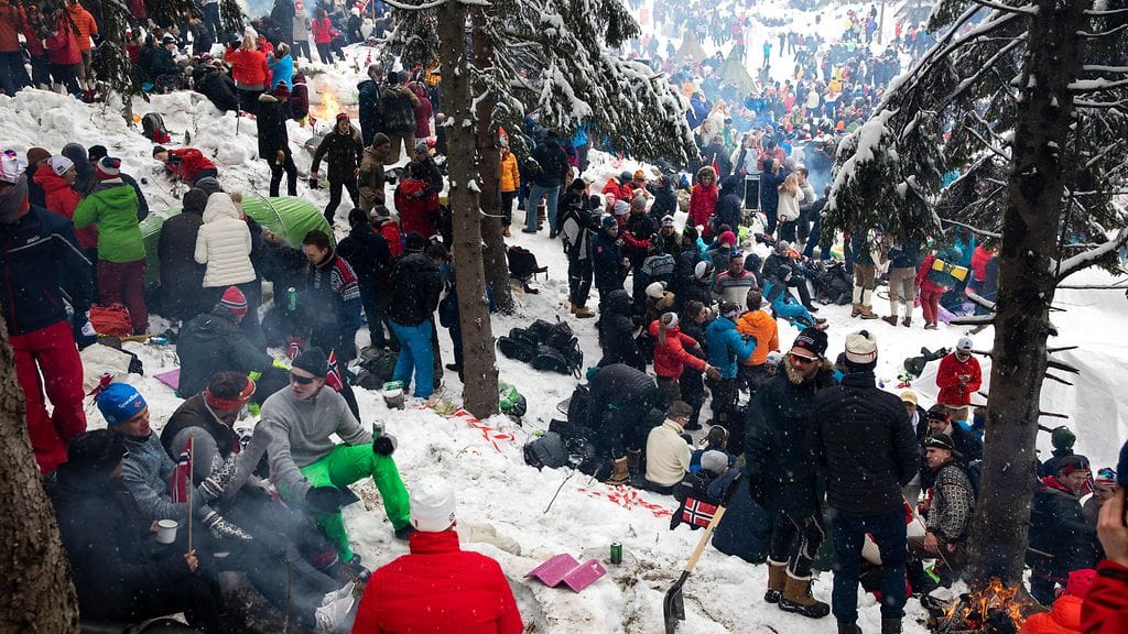 Holmenkollenin kilpailuviikonloppu on Norjassa suuressa suosiossa, mikä näkyy valtavina yleisömäärinä. Rentouttavasta ja viihdyttävästä viikonlopusta nauttimaan saapuneiden katsojien keskuudessa ei ylilyönneiltä vältytty. Poliisi pyrkii rauhoittelemaan villiintynyttä yleisöä useiden partion voimin.