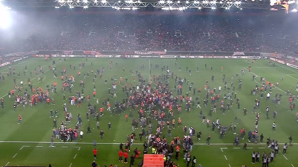 Tilanne oli kaikkien tiedossa Olympiakosin kotistadionilla ottelun loppuhetkillä, kun isännät johtivat 3-1. Aikaa yritettiin pelata muun muassa viskelemällä ylimääräisiä palloja kentälle.