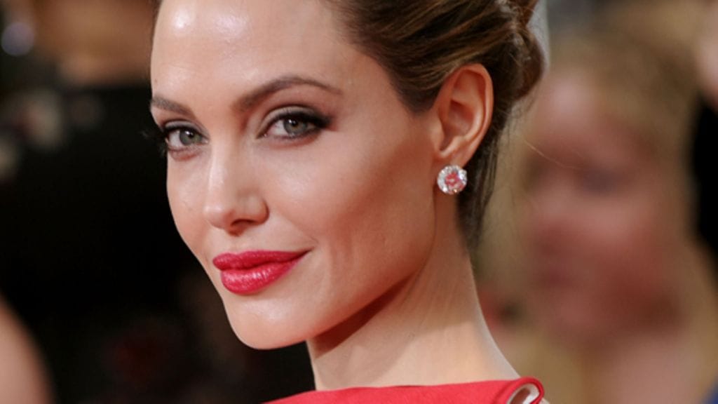 Angelina Jolie säväytti Golden Globe -gaalassa punavalkoisessa iltapuvussa, jota koristi uskomaton halkio.