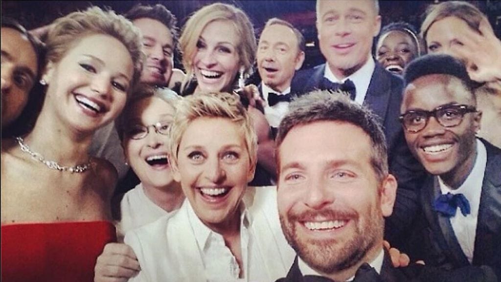 Huomion varasti kuitenkin maailman kuuluisimmaksi selfieksi tituleerattu valokuva. Oscareista käynnistyikin todellinen ryhmäselfiebuumi.
