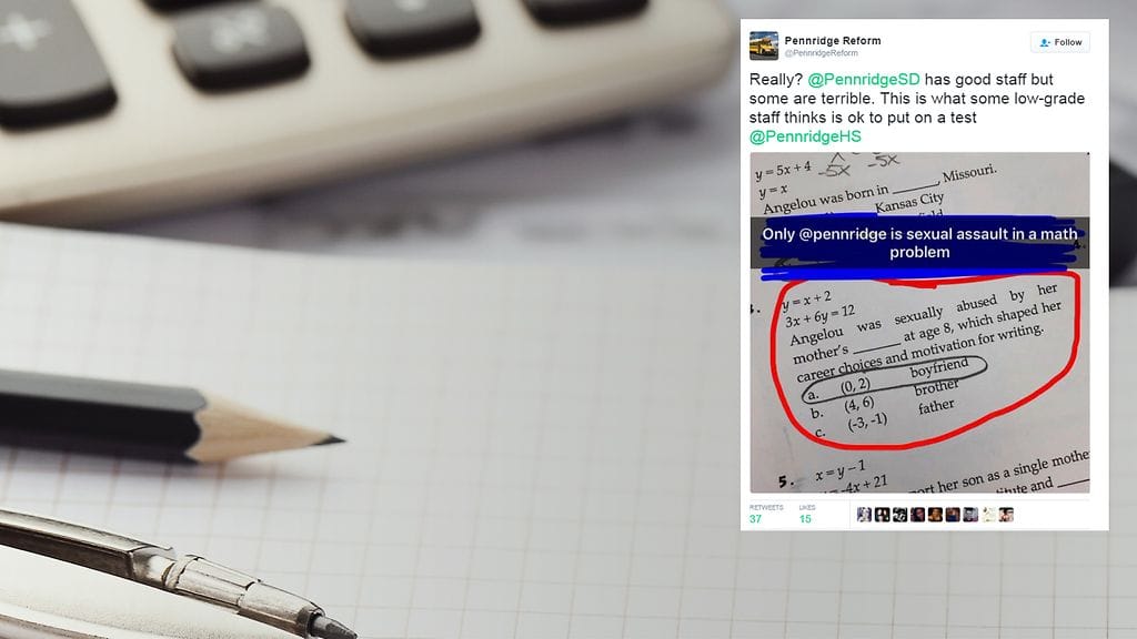 Amerikkalaisen Pennridgen lukion kotiläksyissä piili erikoinen tehtävä. Matematiikan tehtävässä piti nimittäin laskemalla päätellä, kuka perheestä ahdisteli 8-vuotiasta tyttöä.
