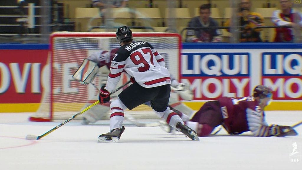 Kanada meni ottelussa nopeasti johtoon Anthony Beauvillierin osumalla. Latvian tasoitus tuli Kristians Rubinsin lavasta päätöserän alussa.