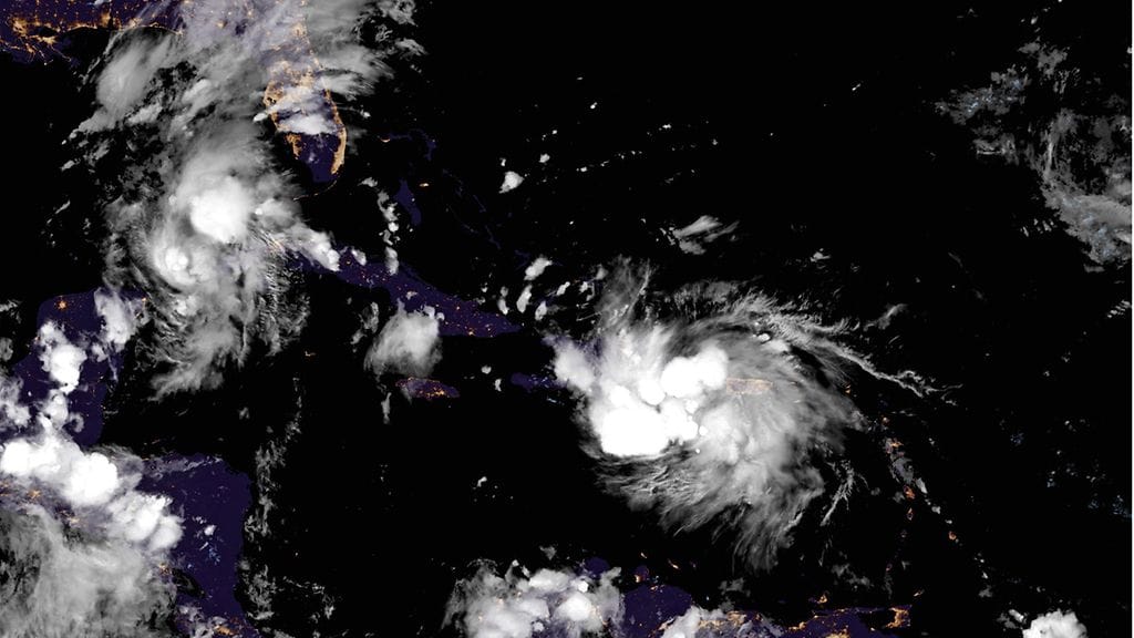 Karibianmerellä koettiin ennennäkemätön tilanne, kun kaksi alueella riehuvaa trooppista myrskyä uhkasi iskeä peräkkäin hurrikaaneina Yhdysvaltojen rannikolle. Nyt niistä ensimmäisen voima on hieman laantunut.