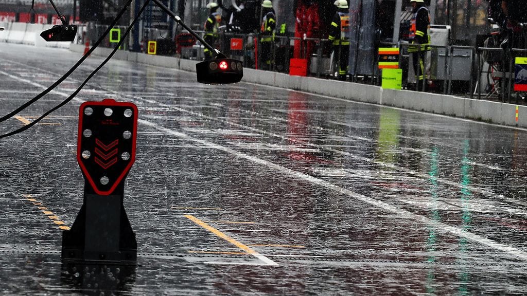 Muun muassa eri tallit ja F1-toimijat jakoivat videokuvaa Hockenheimin varikolta, jossa tiputtelee vettä sangen rankasti.