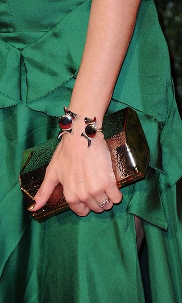 Vihreän, keveän iltapuvun juju oli puvun etupuolella oleva raksimainen leikkaus sekä laaja takaosan halkio. Sienna asusti puvun suurella kaulakorulla ja näyttävällä rannekorulla.