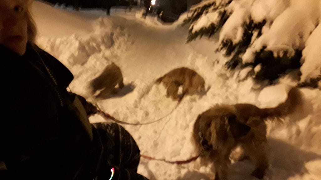 – Itse yritin eilen päästä kirjastolle, mutta jäin niin pahasti jumiin tuonne hankeen, että viiden miehen piti matkan aikana kiskoa minua siellä eteenpäin.