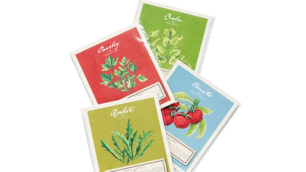 Kun paketti on kaunis, maksaa silmää räpäyttämättä tuplahinnan. Näitä pussukoita tuskin raaskii edes avata. Siemenet 4,90 euroa/kpl, Moko Market.