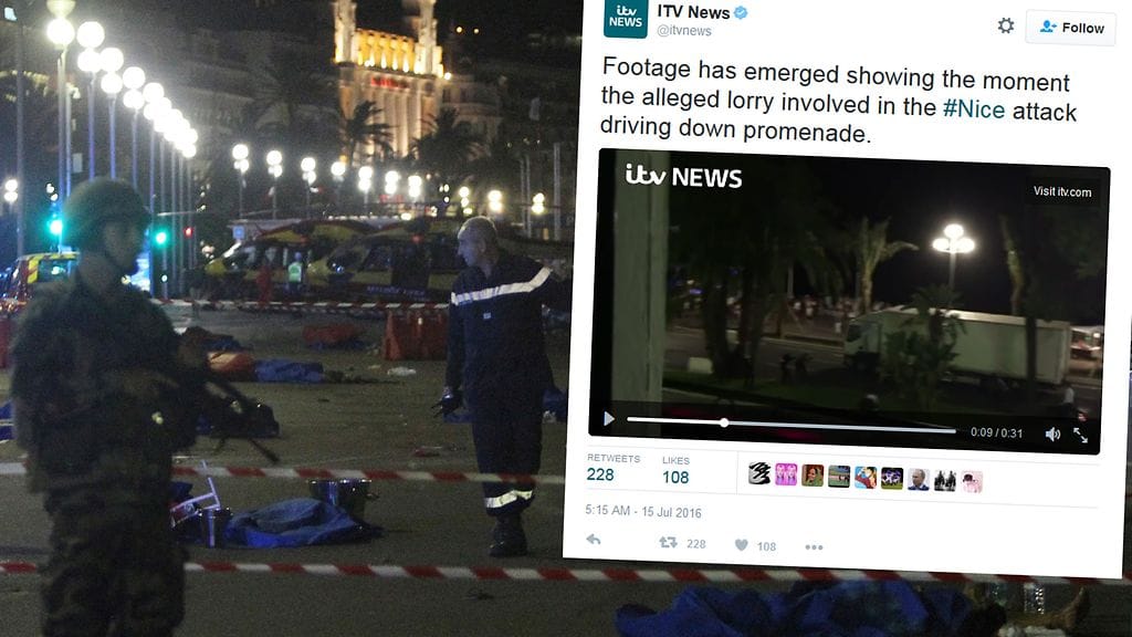 Silminnäkijän parvekkeeltaan kuvaama video paljastaa, miten poliisi yritti pysäyttää rekan sen jälkeen, kun se oli ajanut väkijoukkoon.