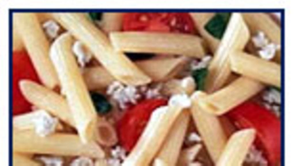 Halkaise tomaatit ja pilko juusto palasiksi. Laita kaikki aineet salaattikulhoon, sekoita kastikkeen aineet ja kaada salaatin päälle sekoita. Tarjoa tuoreen patongin kanssa.