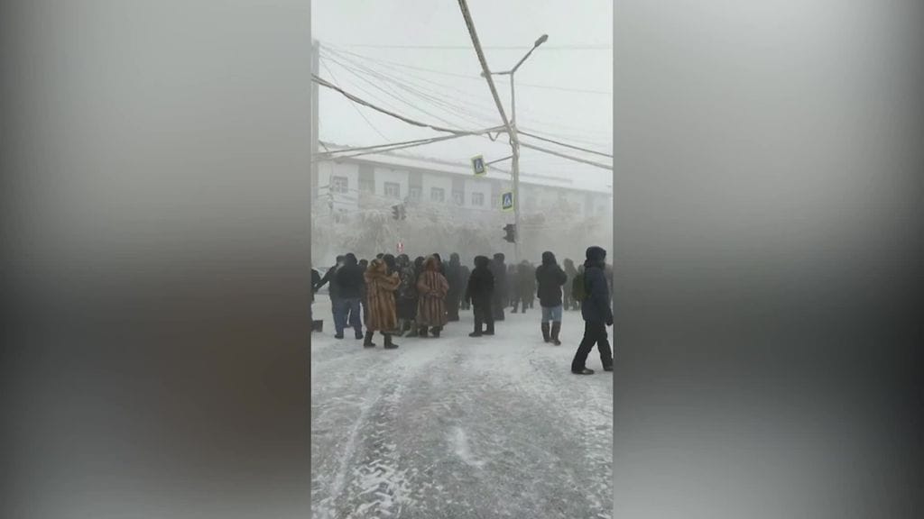 Jakutskissa, Itä-Siperiassa, mielenosoittajat uhmasivat viranomaisten lisäksi jopa 50 asteen pakkasta. Jakutsk on Sahan tasavallan eli Jakutian pääkaupunki Venäjän itäisessä osassa.