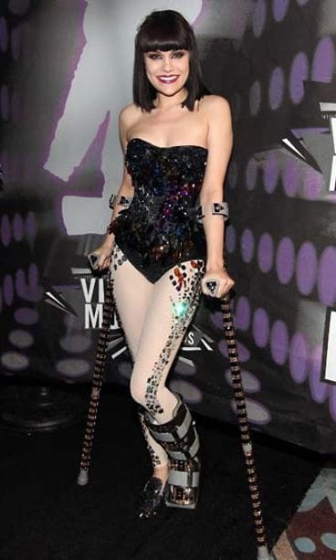Poptähti Jessie J edusti viikonlopun MTV Video Music Awards -gaalassa. Jalkansa alkukesästä loukannut neitokainen loisti kyynärsauvoista ja kipsistä huolimatta.