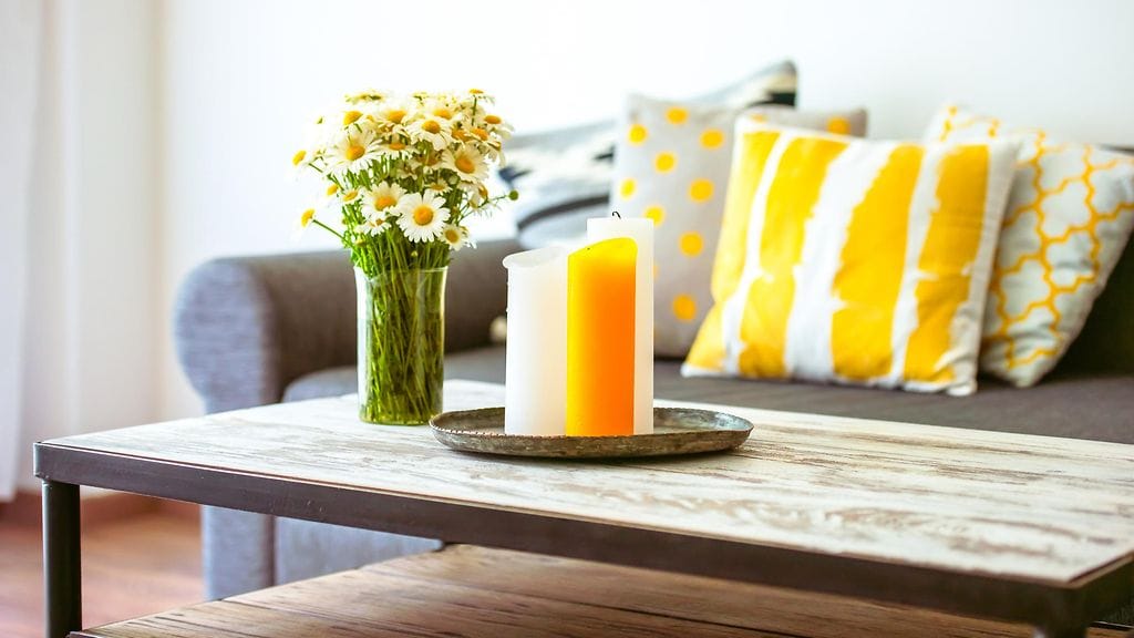 Tiesitkö, että ihmiset tuntevat itsensä onnellisiksi, kun ympärillä on keltaista. Keltainen on pirteä väri, joka ruokkii luovuutta ja viestintää. Jos et halua maalata koko kämppääsi keltaiseksi sisällytä sisustukseen hippunen keltaista aksenttivärinä kukissa ja tekstiileissä.