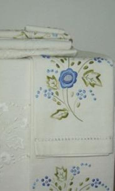 Aikoinaan lakanoihin kirjailtiin omistajan nimikirjaimet ja näyttäviä kukkakuvioita. Nämä kauniit kirjailut voi leikata vanhasta lakanasta irti ja ommella joko uuteen lakanaan tai esimerkiksi kirjankansia koristamaan.