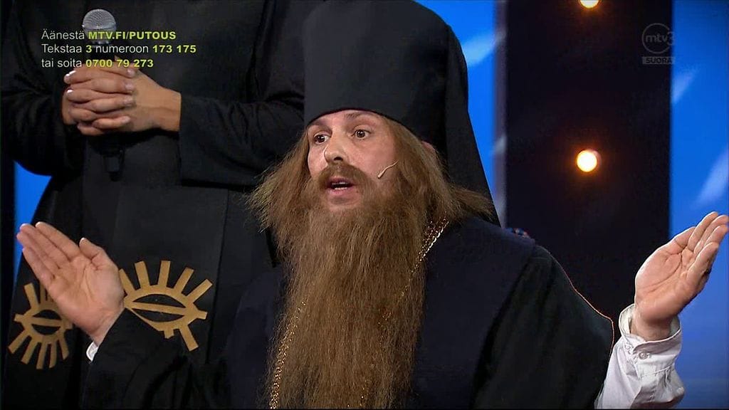 Timo Lavikaisen sketsihahmo Isä Nitron viimeisessä esityksessä lavalla nähtiin lauma Nitron hengentovereita.