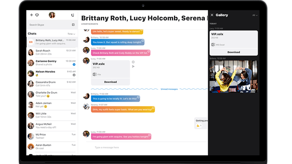Skype kertoo, että muutoksia tehdään tietokoneiden suuremmat työpöydät mielessä. Käynnissä olevat keskustelut saavat oman ilmoituspaneelin ja ne keskustelut, joissa käyttäjä on @-mainittu, näkyvät korostettuna. Skypeen on myös tulossa mediagalleria, joka auttaa löytämään Skypessä jaetut kuvat, linkit ja tiedostot helpommin.