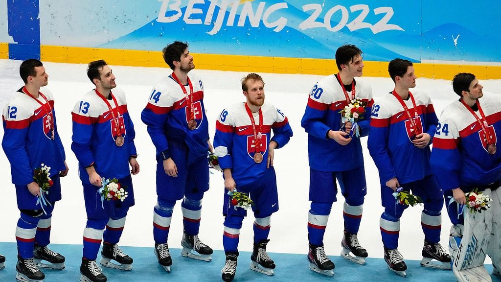 Slovakian miesten jääkiekkomaajoukkue juhli täysin siemauksin historiansa ensimmäistä olympiamitalia, kun joukkue kukisti Pekingin talvikisojen pronssiottelussa Ruotsin selvästi 4–0. Pronssipelin pääosaa esitti kisojen aikana jo tutuksi tullut hyökkääjänuorukainen, vasta 17-vuotias Juraj Slafkovsky.