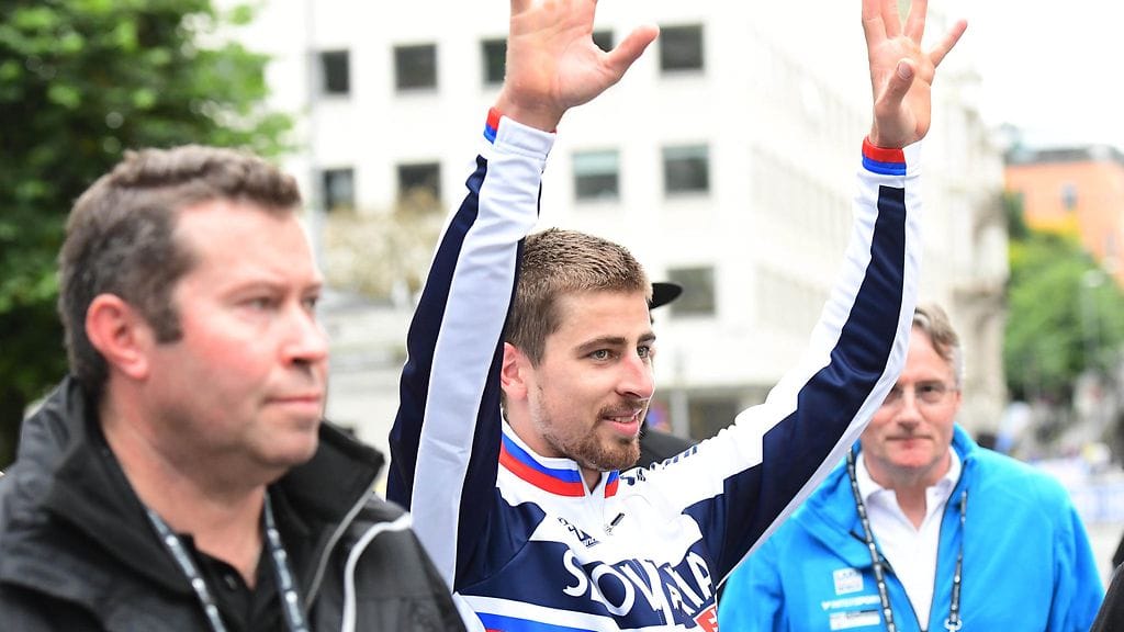 Slovakian mahtipolkija Peter Sagan kukisti maalikamerakuvassa Norjan Alexander Kristoffin ja otti kolmannen peräkkäisen maailmanmestaruutensa maantiepyöräilyn miesten maantieajossa.