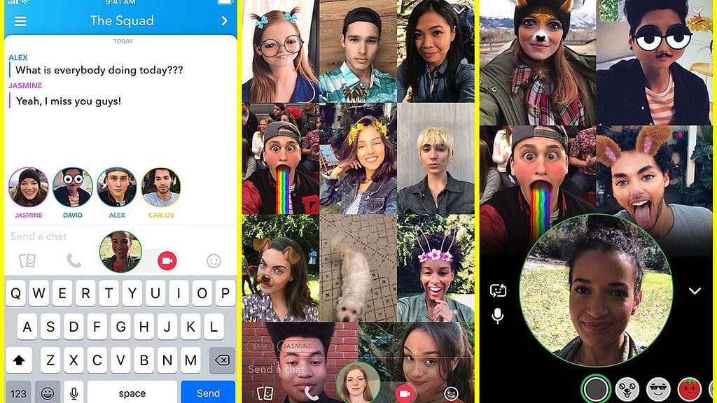 Snapchatin mukaan sen lisätyn todellisuuden maskit eli linssit ovat käytettävissä myös ryhmävideopuheluissa.