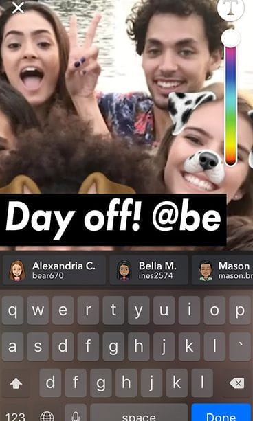 Toisena uutuutena Snapchat kertoi tänään maininnoista. Jatkossa tarinajulkaisuissa voi @nimimerkki-mainita toisen käyttäjän, jolloin nämä saavat tästä ilmoituksen.