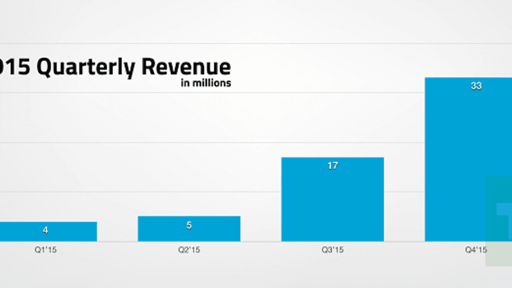 Vuoden viimeisellä neljänneksellä liikevaihtoa kertyikin jo 33 miljoonaa, sitä ennen kolmannella 17 miljoonaa ja alkuvuodesta toisella neljänneksellä vain viisi ja vuoden alkuneljänneksellä neljä miljoonaa.