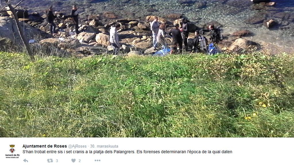 Espanjassa on löydetty kahdeksan pääkalloa matalasta rantavedestä Rosesin kaupungin lähistöltä. Pääkallojen uskotaan olevan ihmisluita.