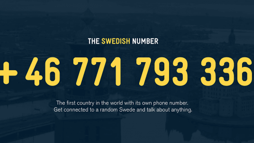 Ruotsin puhelinnumeron taustalla on Svenska Turistföreningen eli sikäläinen matkailuneuvonta, joka haluaa tempauksella tietysti nostaa maansa kansainvälistä näkyvyyttä, tai siis kuuluvuutta.
