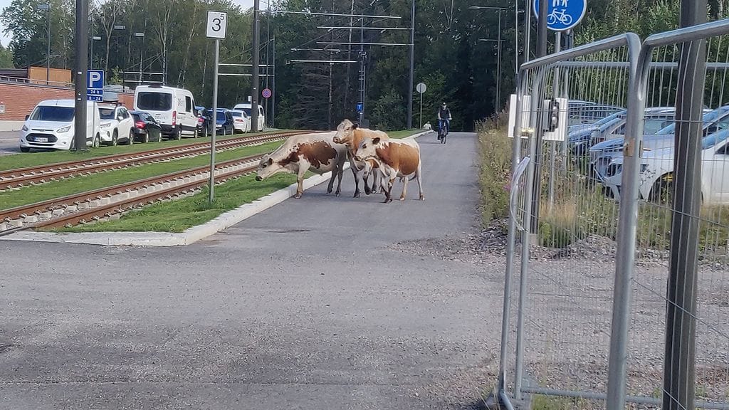 Kyseessä oli kolme sonnia, mitkä kävelivät kävelytietä pitkin Raidejokerin kiskojen vieressä.