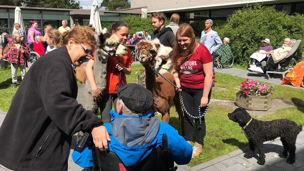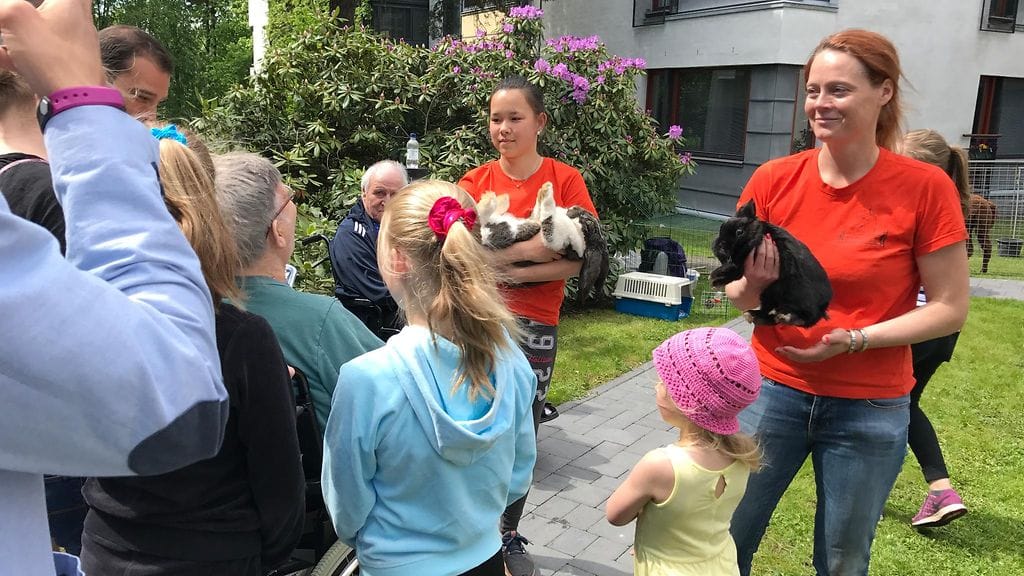Puotilan palvelutalossa eläimet toivat iloa asukkaille.