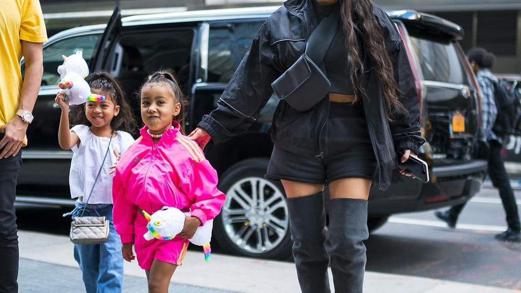 Kuvassa parin esikoinen North, joka syntyi kesäkuussa 2013 pitää sylissään perheen kuopusta, toukokuussa 2019 syntynyttä Psalmia.