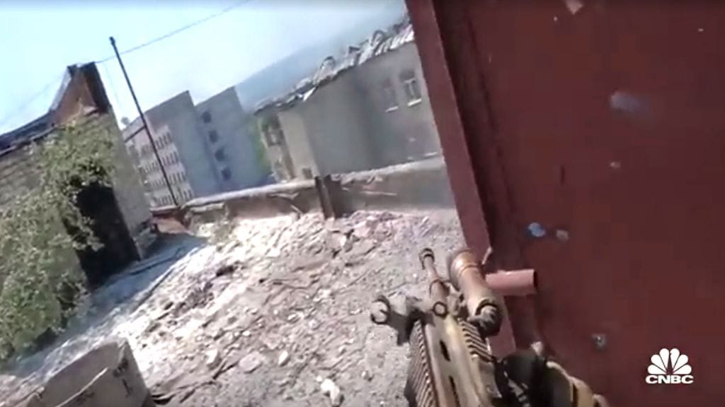 Jutun alussa oleva video on ytimekäs esimerkki kaupunkisodan kaaoksesta. Siinä on yhdistetty materiaalia ukrainalaisjoukkojen kameroista, jotka todennäköisesti on kiinnitetty kypäriin. Video on CNBC-uutiskanavan mukaan peräisin vapaaehtoisten ulkomaalaissotilaan ja poliisin kameroista.