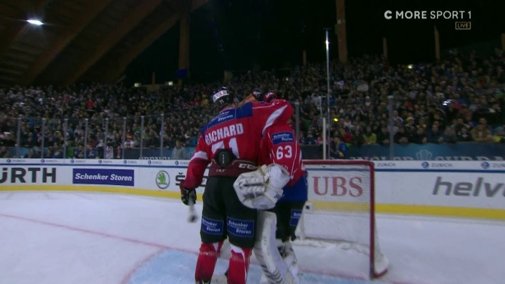 Sveitsin ja Davosin välisessä iltakamppailussa Sveitsi oli kahden erän jälkeen 4-3-johdossa.