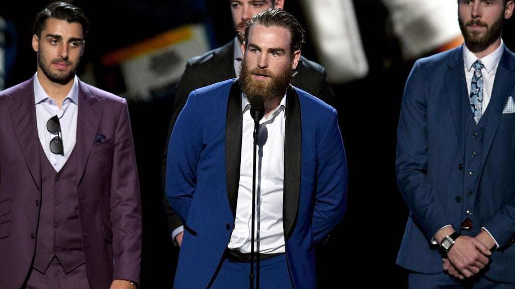 Stanley Cupin voittaneen St. Louis Bluesin tähtihyökkääjä Ryan O’Reilly herätti hilpeyttä käytöksellään ESPYS-palkintogaalassa.