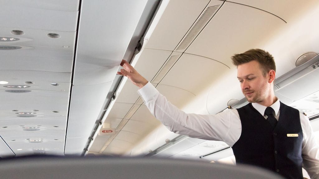 Amerikkalaisen lentoyhtiön stuertti viihdytti matkustajia komiikkaa täynnä olevalla esityksellään.