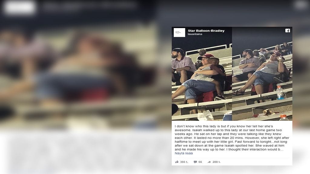 Star Balloon-Bradley jakoi Facebookiin julkaisun veljenpoikansa Isaiahin ja tuntemattoman naisen liikuttavasta kohtaamisesta.