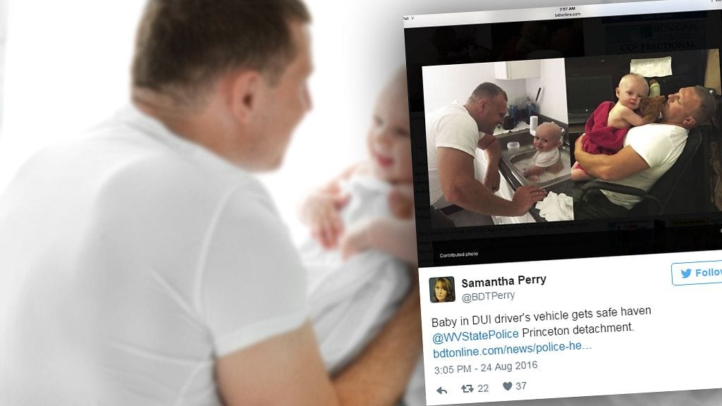 Vuoden ikäinen poikavauva löytyi auton takapenkiltä oksennuksen peitossa kuljettajan kärähdettyä rattijuopumuksesta. Paikallispoliisi otti lapsen hellään huomaansa, kertoo Huffington Post.
