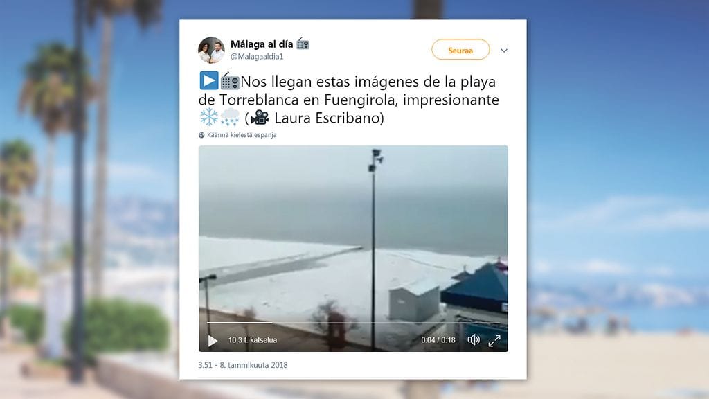 Aurinkorannikolla jouduttiin pari päivää sitten hieraisemaan silmiä, kun ranta oli valkoisenaan, ei hiekasta vaan lumesta ja rännästä.