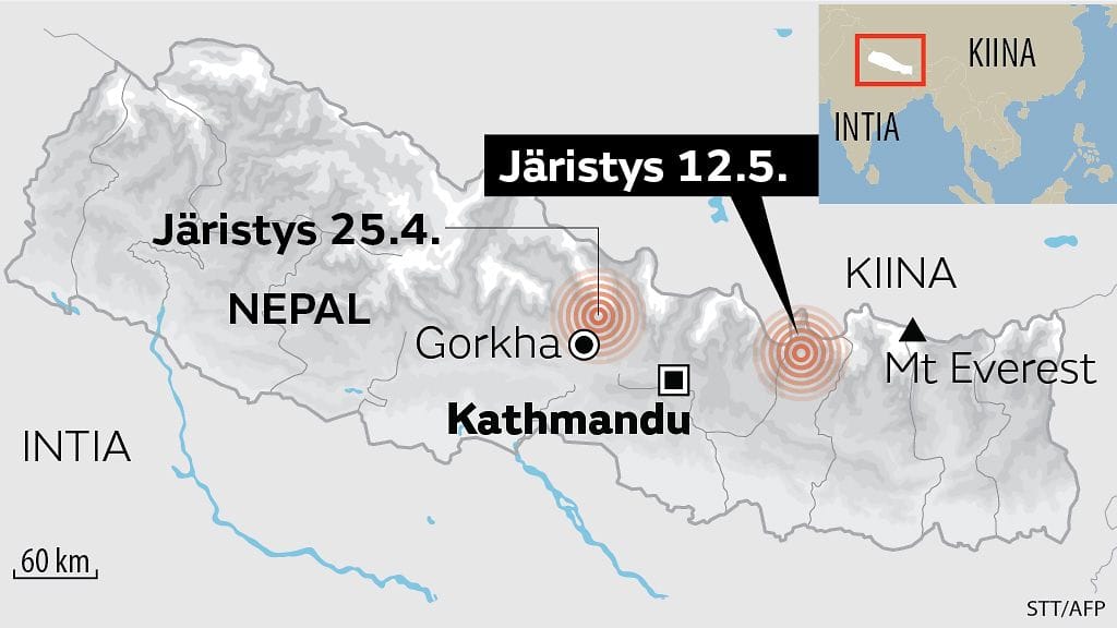 - Voimakkaat maanjäristyksen alkoivat tuossa ehkä puoli tuntia sitten ja ovat edelleen käynnissä. Jatkuvasti tulee hyvinkin voimakkaita järistyksiä. Kathmandu ei ole tämän maanjäristyksen pääpaikka, mutta silti täällä näkee, että taloihin on tullut halkeamia. Itse olen tietenkin nyt turvapaikassa, enkä näe hyvin kaduille. Ihmiset yrittävät soittaa perheenjäsenilleen ja saada tietoa, ovatko he kunnossa, Hardén kertoo.
